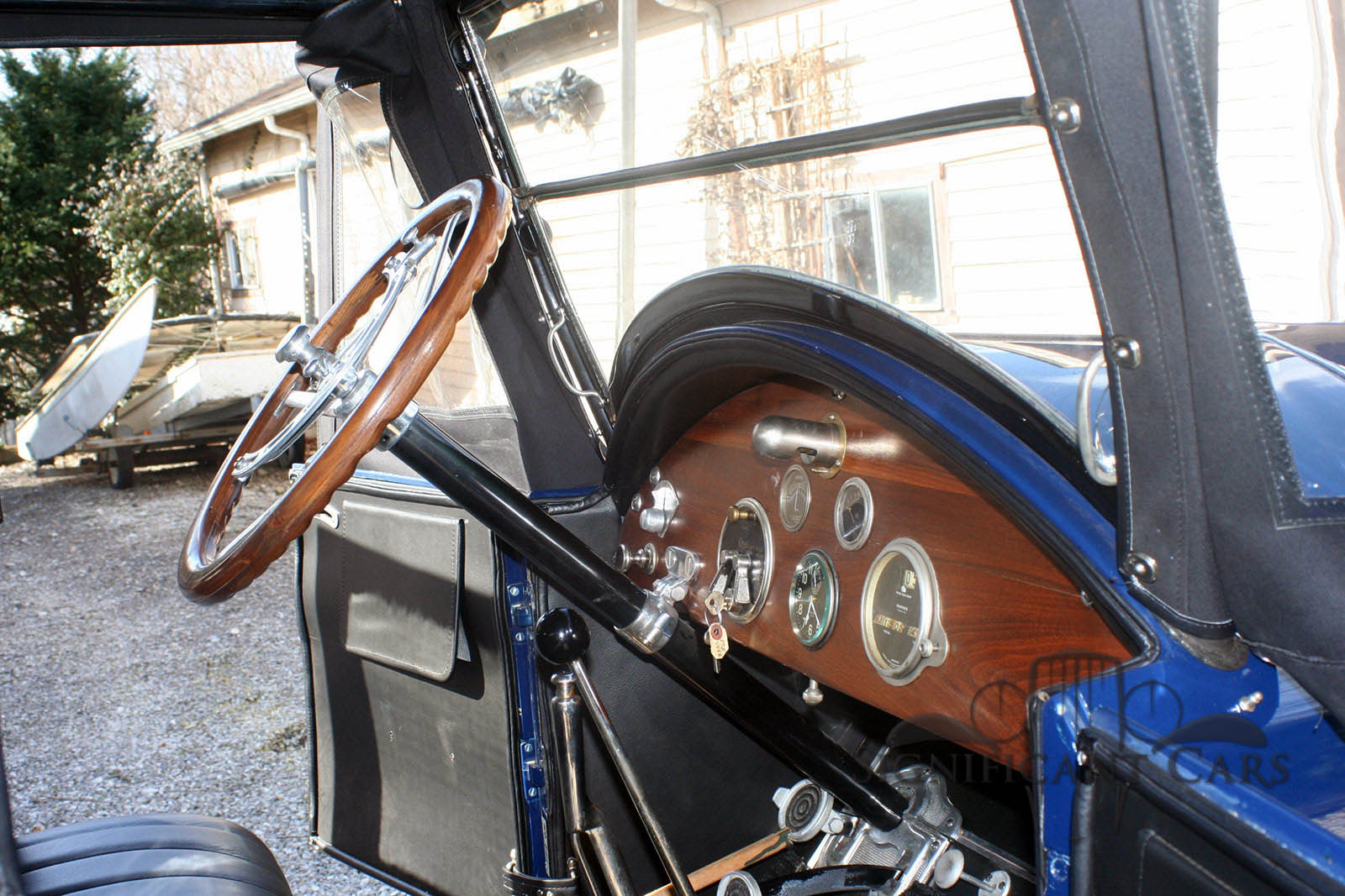 This car was purchased in 1950 by Joseph J Cole, grandson of the Company founder to serve as a parts car to support the several Coles which were stored in the basement of the Cole Factory on Washington St. The seller purchased the car in 1991, finding several parts had been removed for use on other cars and much of the body wood had deteriorated. It received a complete restoration from 1995 to 2001 with the missing instruments and parts either purchased or fabricated and with replacement of most of the body wood .